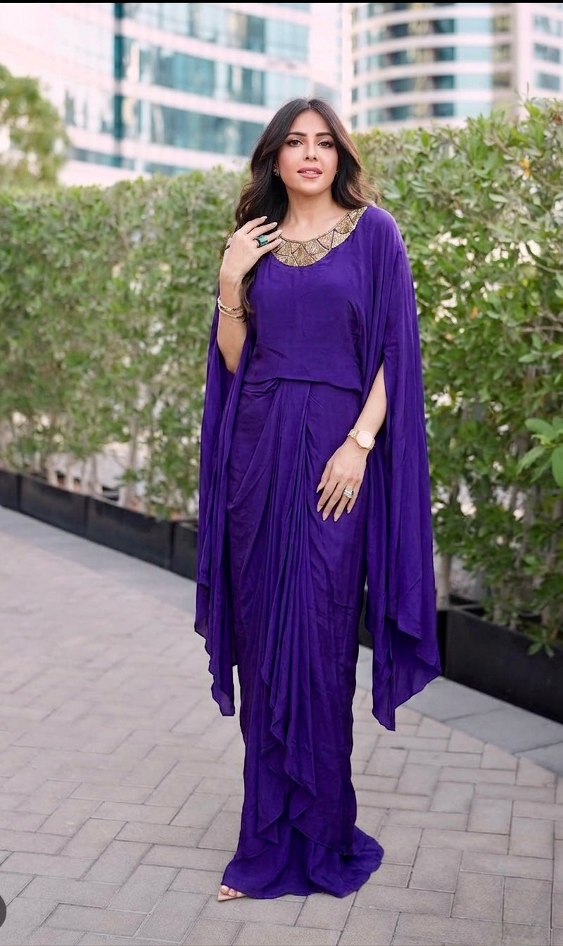 Bold, fluid, and effortlessly statement-making — the Noor Electric Purple Cape Dhoti Dress is designed for the modern woman who loves standout silhouettes with ease.